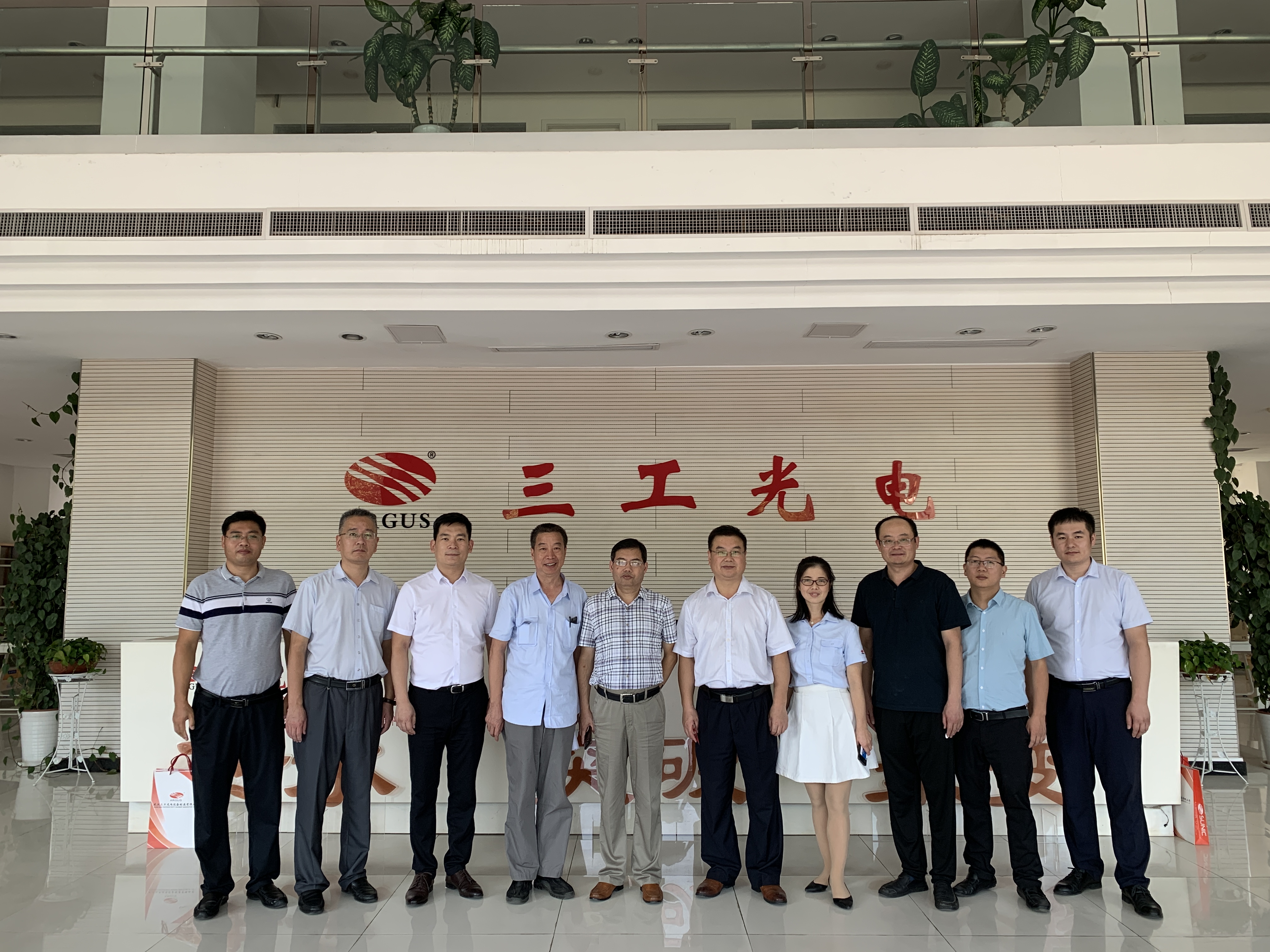 2020年9月2日山東省臨沂市國有資產投資控股集團有限公司黨委書記、董事長魯峰武,臨沂經濟技術開發(fā)區(qū)黨工委委員、管委會副主任楊振魁 等一行考察團蒞臨武漢三工光電設備制造有限公司參觀指導。