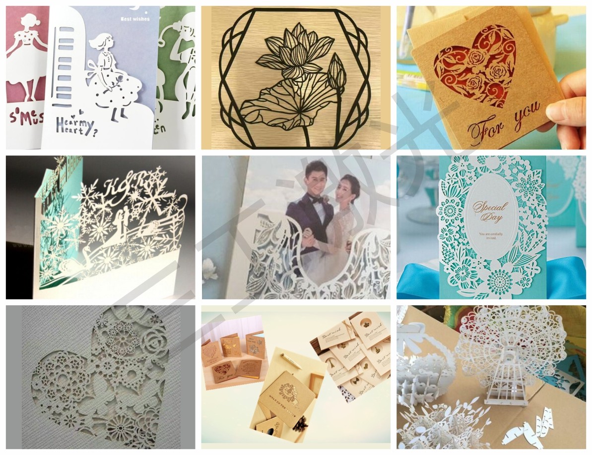 該設(shè)備適用于賀卡、年畫(huà)、喜帖、月餅盒、糖盒、剪紙、3D紙雕燈、請(qǐng)柬、蛋糕圍邊、席位卡杯卡、繪畫(huà)模板、文創(chuàng)工藝品等多種紙質(zhì)材料以及PET材料的雕刻、切割、鏤空制作。