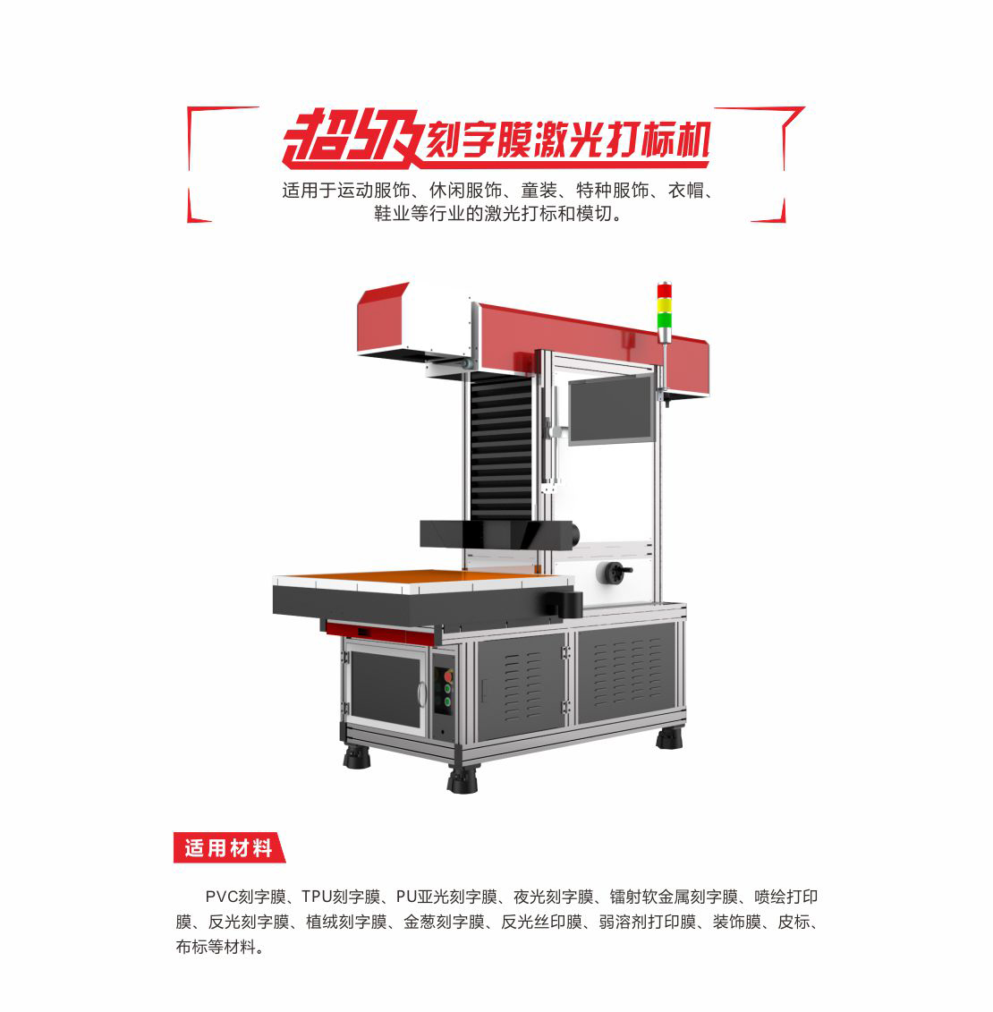 1、與普通激光加工工藝相比,超級(jí)刻字膜激光打標(biāo)機(jī)加工速度更快,效率更高。