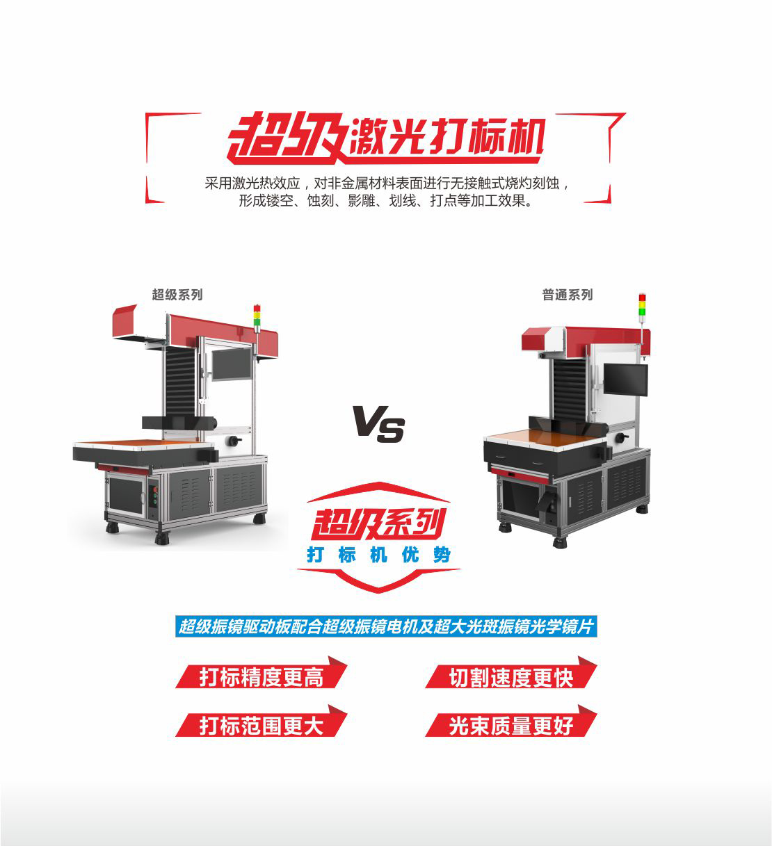 超級(jí)打標(biāo)機(jī)使用超大光斑三維動(dòng)態(tài)系統(tǒng),加工速度比普通激光打標(biāo)機(jī)快,配上強(qiáng)大的打標(biāo)軟件,使打標(biāo)速度可達(dá)10000mm/s,配上50光斑高速振鏡,更適合刻字膜大批量生產(chǎn)。