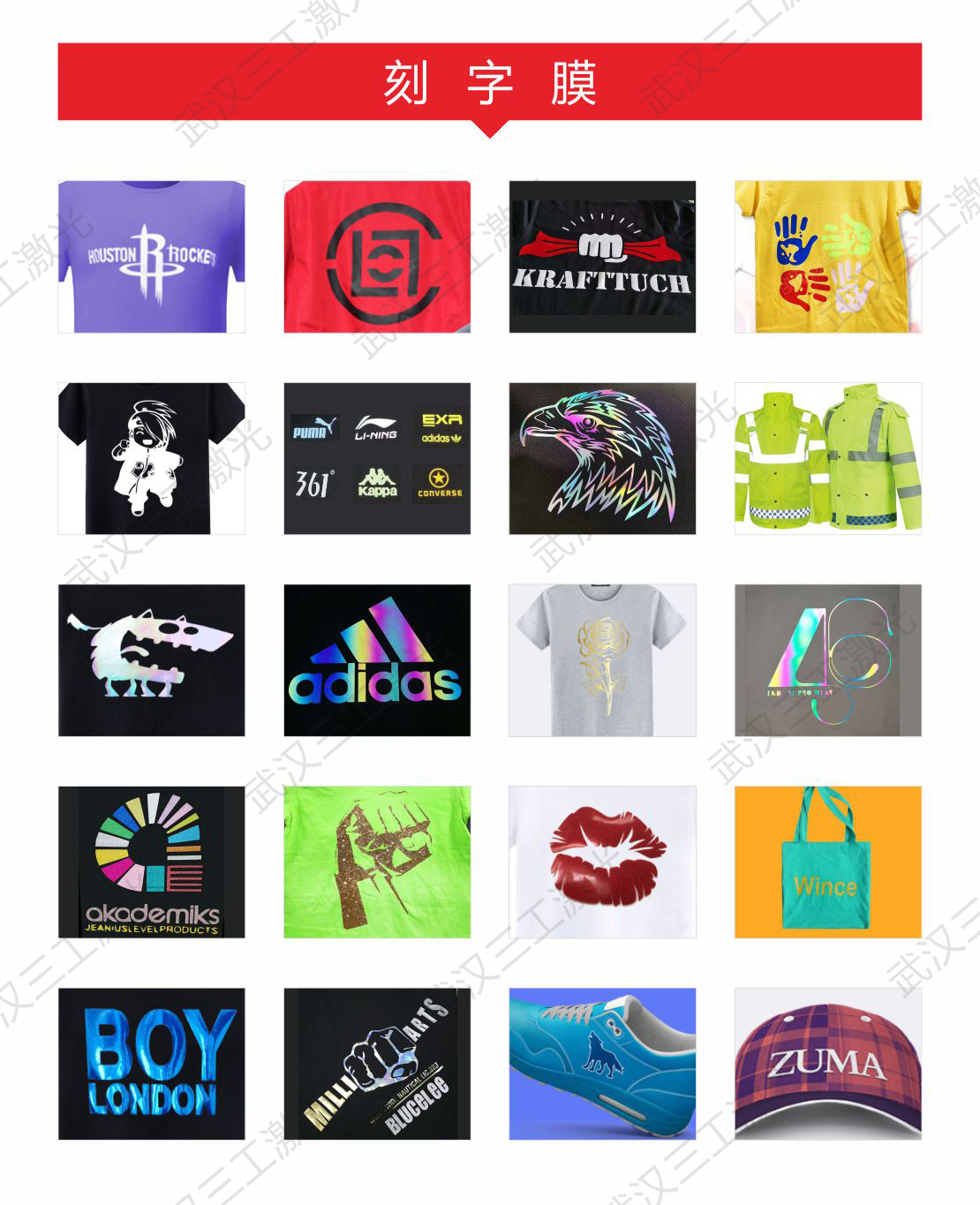 刻字膜主要是應(yīng)用于服裝、廣告、印花、鞋包等行業(yè)的標(biāo)識(shí)、圖案、字母、數(shù)字的燙印。就服裝行業(yè)里面又可以分為球服、泳裝、騎行服、戶外服等等,就面料而言可以分為棉、滌綸、萊卡、皮革等等,不同的刻字膜有不同的應(yīng)用要求??套帜て淅?、回彈、耐水洗性能非常優(yōu)秀。