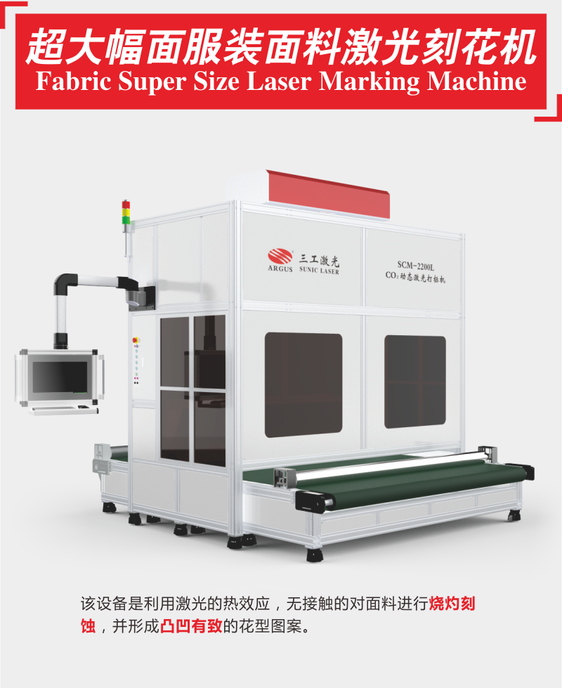 武漢三工激光超柔面料激光刻花機(jī)雕刻范圍大,到2200mmX無限長,整卷面料可一次雕刻完,適用材料廣泛:超柔面料、植絨面料、藝術(shù)墻紙、牛仔面料、 燈芯絨、天鵝絨等多種面料,速度超快:激光雕刻速度高達(dá)12000mm/s,根據(jù)圖形雕刻復(fù)雜程度不同,1600mm寬度的面料快每小時可雕刻一百米,雕刻效果精致、無飛邊、不毛邊、不焦邊、不糊邊,自主操作軟件:自由排版、隨時出樣、不拼接、無限循環(huán)雕刻,支持多種軟件格式:AI、DWG、DXF、PLT、BMP、JPG等多種矢量圖和位圖。