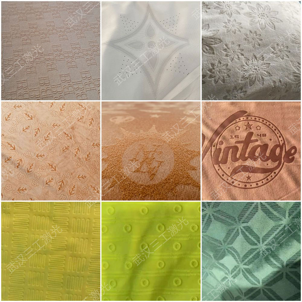 該設(shè)備是利用激光的熱效應(yīng),無接觸的對面料進行燒灼刻蝕,并形成凸凹有致的花型圖案。